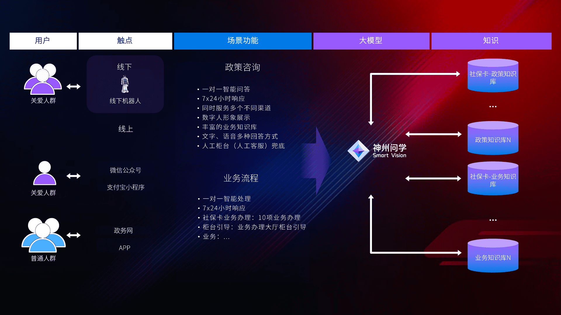 在服务大厅部署客服机器人,,在线上应用和小程序配置客服数字人,,,724小时为群众解答常规问题,,,客服机器人无法处理的,,,,转现场人工处理。。。